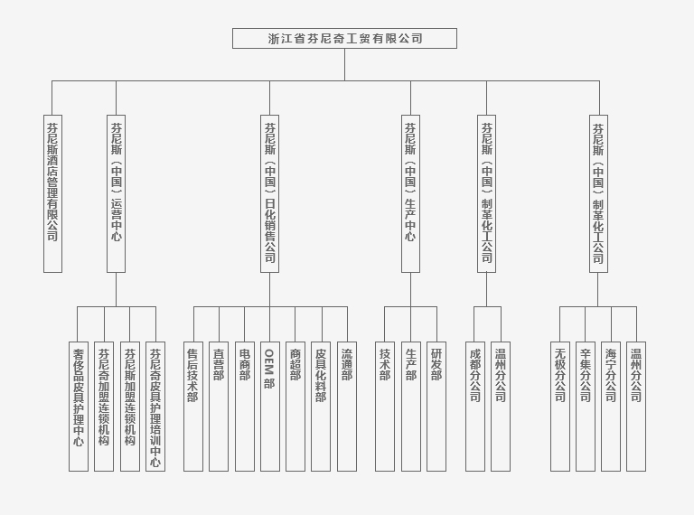 浙江芬尼奇工贸有限公司,自成立之日起,对组织机构建设就十分重视,成立了以鲍光华为董事长的董事会,董事会下设总经理以及10个分部,具体是: