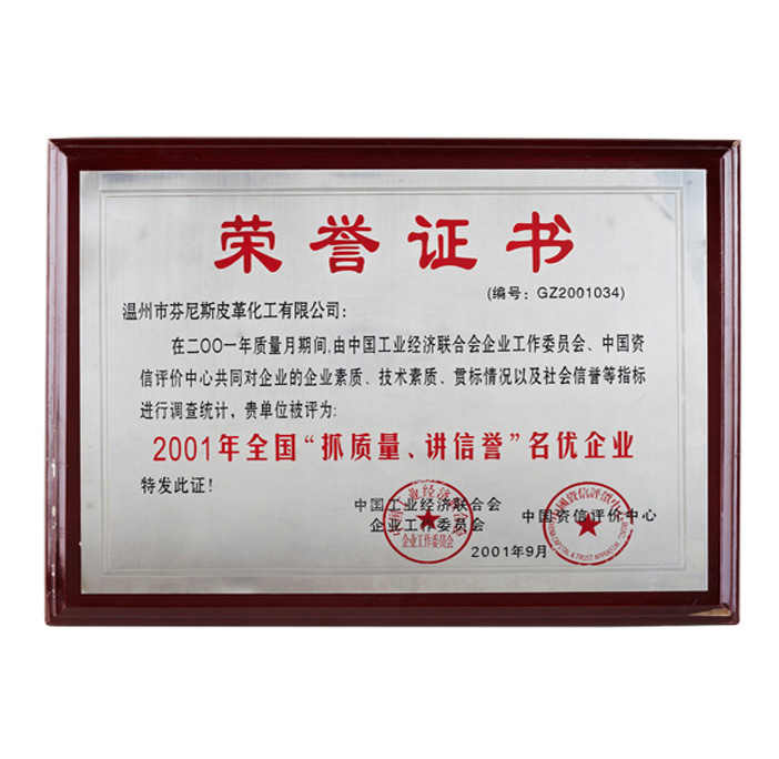 2001年全国“抓质量,讲信誉”名优...