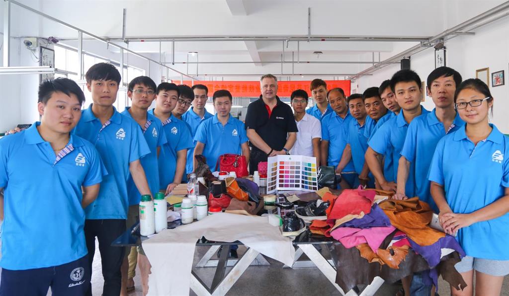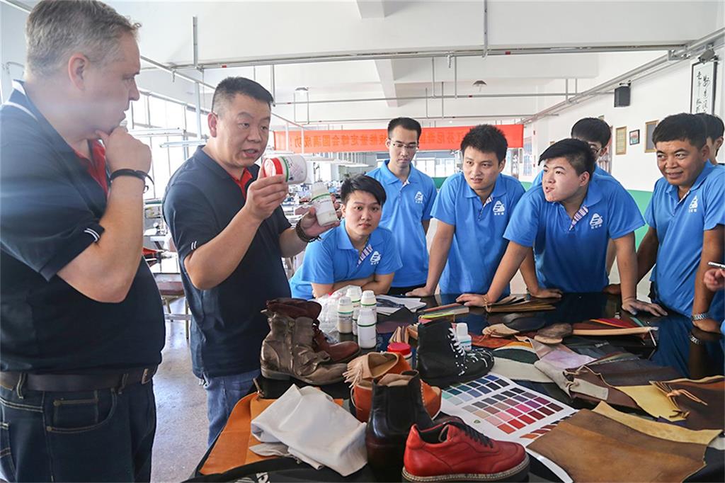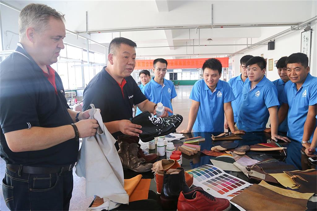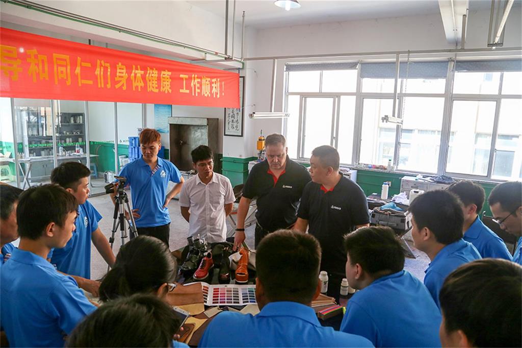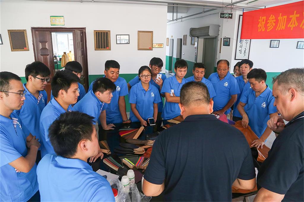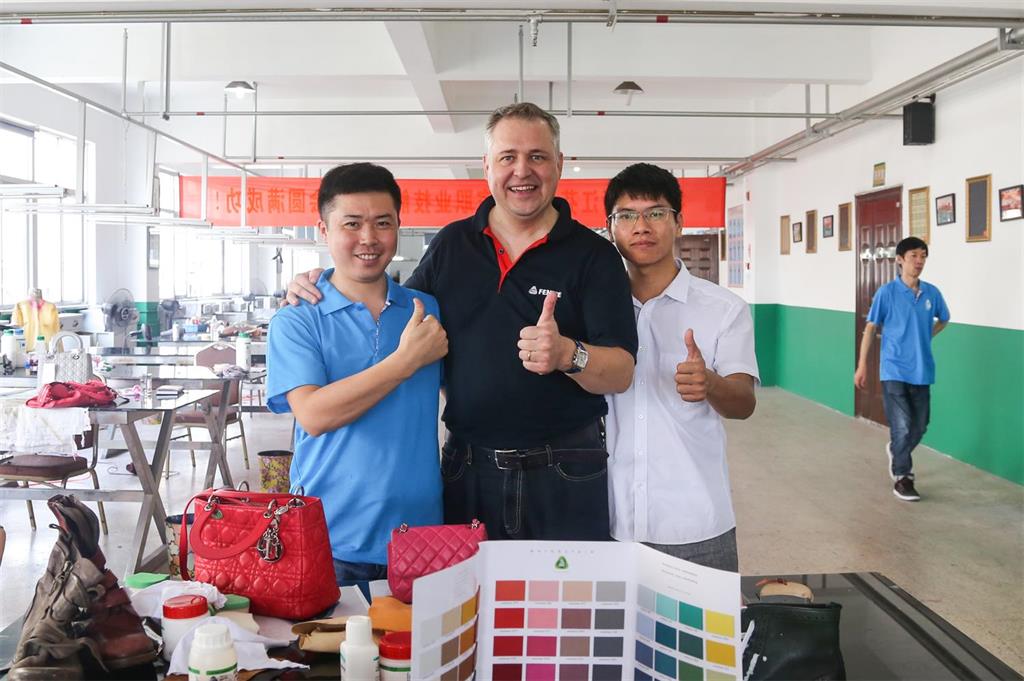8日上午,由意大利芬尼斯专业皮革化工有限公司,技术总监Andrew(安局)先生率领的皮具修饰护理技术团队一行3人,在温州芬尼斯公司董事长鲍光华的陪同下,对温州芬尼斯公司展开了为期5天的技术提升活动。