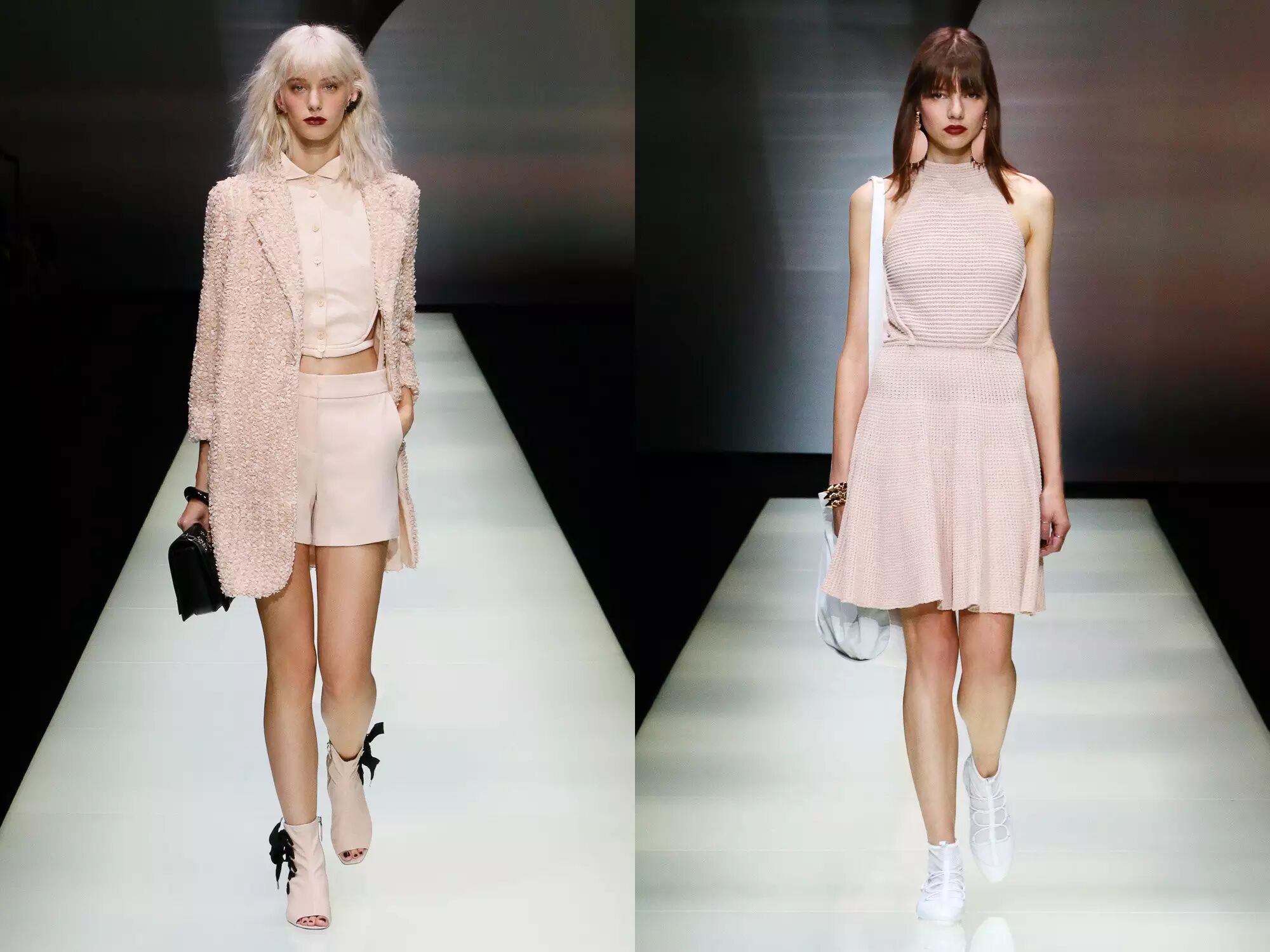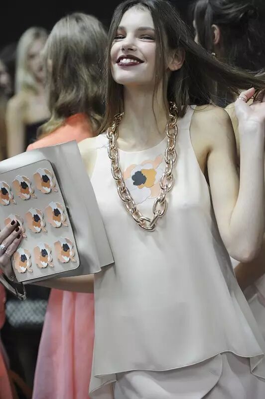 少女感十足的粉红色,以连衣裙与印花裤装呈现,散发甜美梦幻气息。套装剪裁优雅而别具风格,令沉闷的职场装扮变得活泼可爱起来,焕发出与众不同的美感。