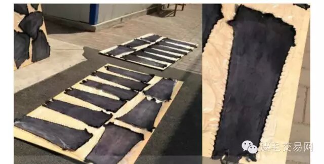 2、取下的毛皮原料,并利用细钉进行绷板定型